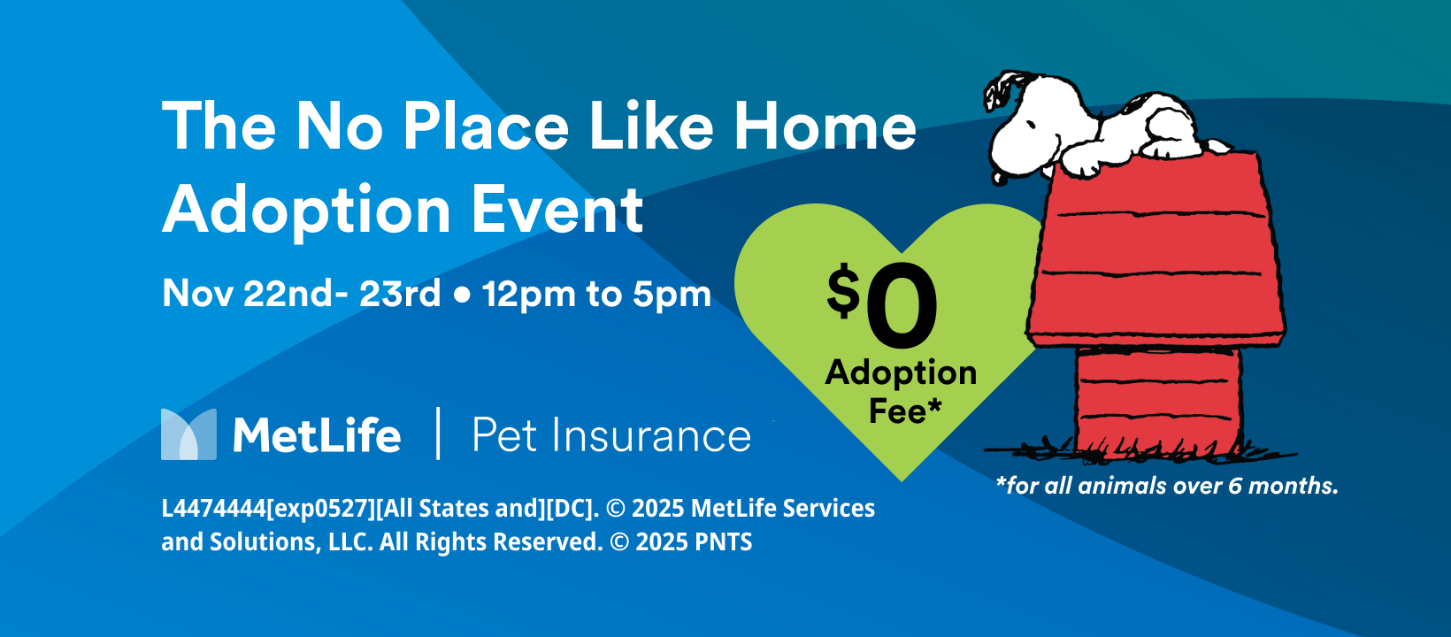 There really is no place like home, especially around the holidays. To bring more animals to their new homes for the holidays, we are excited to partner with MetLife Pet Insurance to offer waived adoption fees this weekend only! This Saturday, November 22 and Sunday, November 23, MetLife Pet Insurance will be covering the adoption fees for all animals 6 months and older. ...