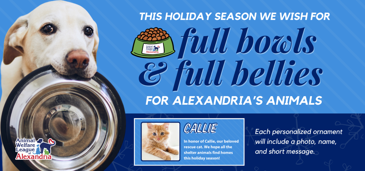 Help us fill bowls and bellies of shelter animals this holiday season! For $25 you can sponsor a personalized ornament that will decorate an outdoor tree in Del Ray (outside Del Ray Hardware) starting Saturday, December 7 and running through the holidays. The ornament can be in honor or memory of a friend, family member or beloved animal companion. A …